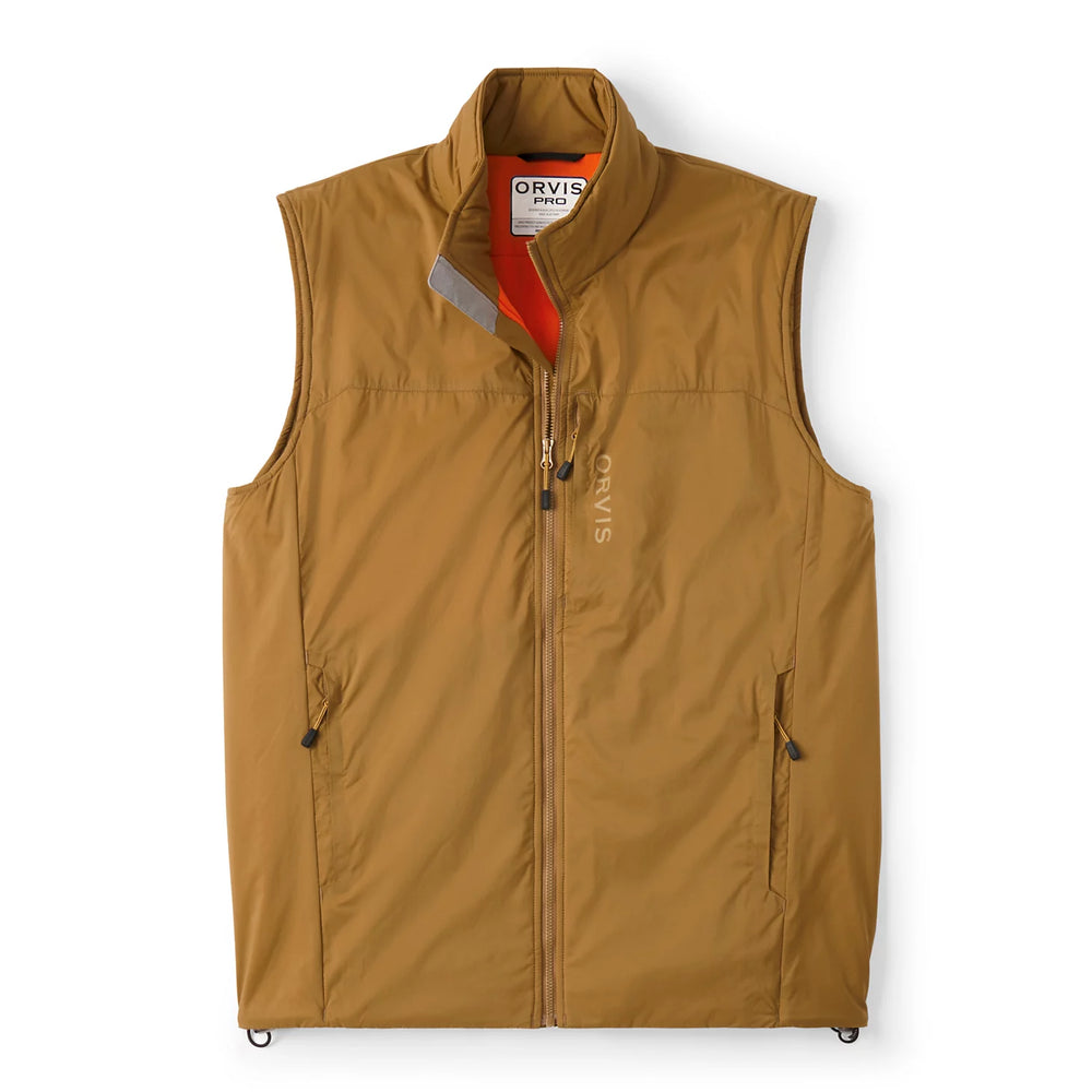 Orvis PRO fishing apparel is the most technologically advanced outerwear we’ve ever built, as you can clearly see in the performance tech available in our Men's PRO Insulated Vest. Using a combination of technical fabrication and action-specific design, Orvis PRO apparel takes on the elements and provides the protection necessary in even the harshest environs. The Men’s PRO Insulated Vest uses body-mapped insulation to provide optimal temperature control through a wide range of activity level and environments. 80g PrimaLoft® Gold Active insulation (45% recycled content) protects the body’s core, with weightless, highly packable warmth ideal for active pursuits. Polartec® Alpha® (80g) (55% recycled content), designed for Special-Ops teams, regulates body heat and moisture through the side panels, allowing the vest to be comfortably worn through a wide range of temperatures and activities. The outer is a 20D mechanical stretch ripstop nylon shell with unique coating to improve wind and weather resistance. Zippered, fleece-lined hand-warmer pockets, zippered chest pocket for storage, and internal zippered security pocket that doubles as a stuff sack. High-quality YKK® zippers and DWR (Durable Water Repellent) coating. Active fit ideal for layering.