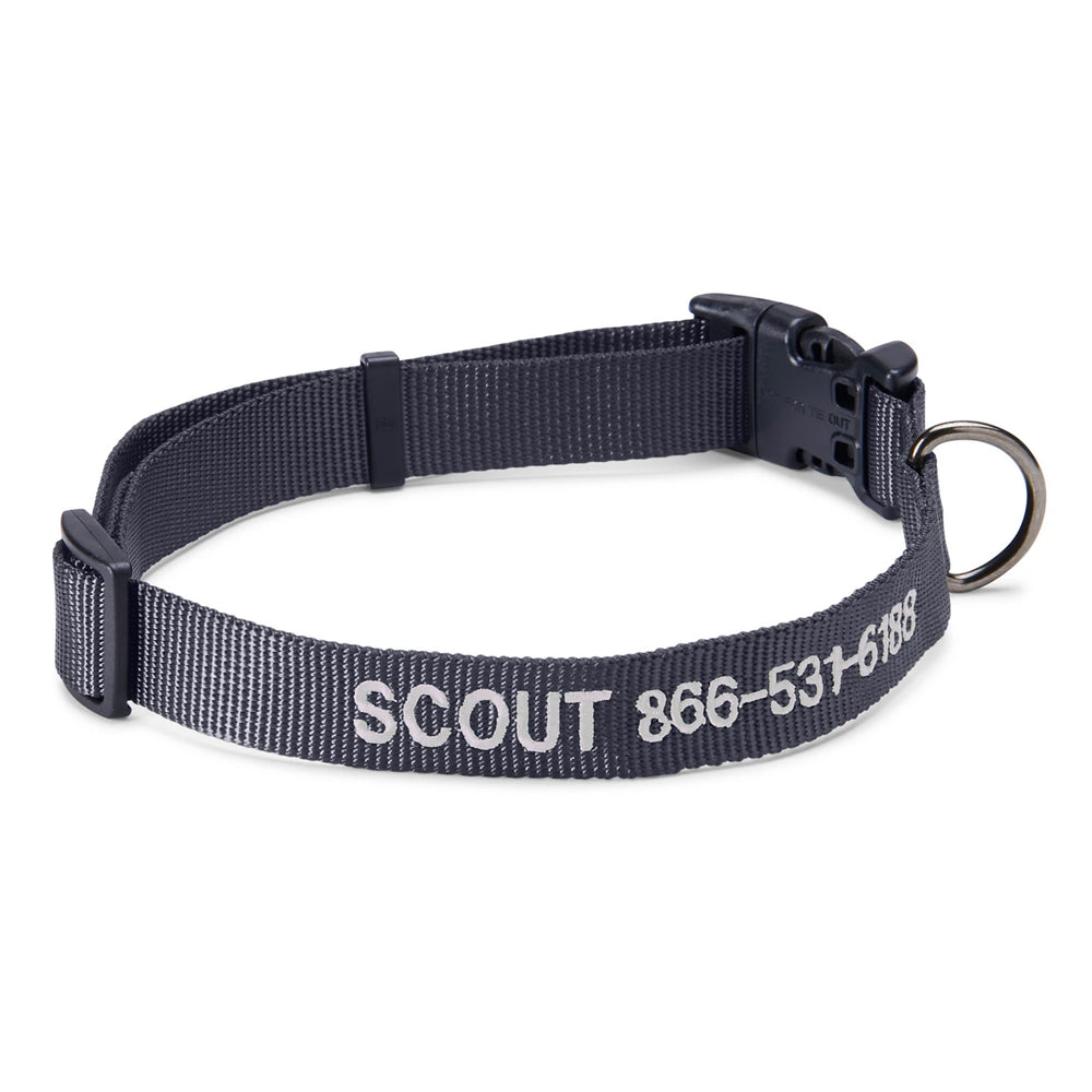 Personalized with your phone number for safety and always a perfect fit, our customer-favorite adjustable side-release buckle dog collar goes on in a snap and removes just as fast. Embroidered with your dog’s name and your phone number for free, this collar helps make sure your pup always finds their way home.