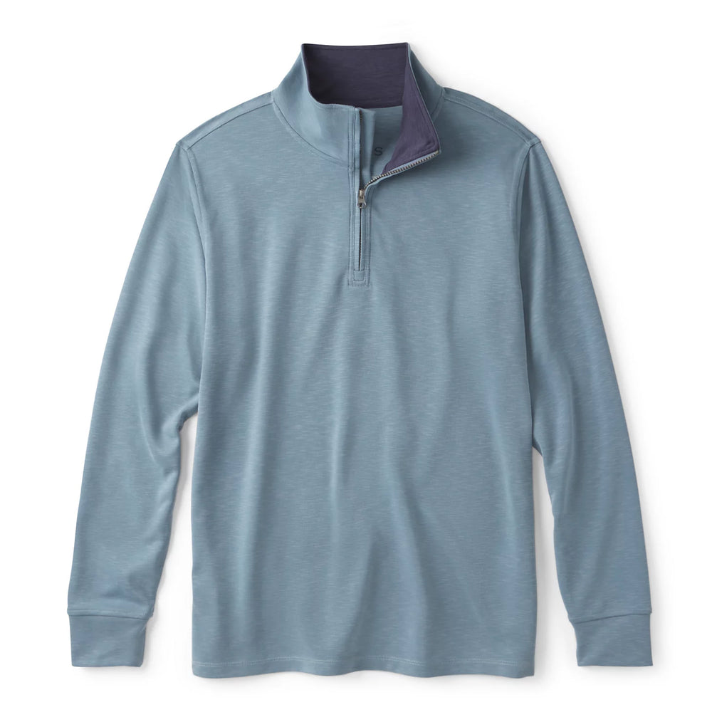 When seasons start to change and you need a versatile second layer, you’ll be glad you have our Three Forks ¼-Zip Sweatshirt at hand, in eco-friendly recycled poly. We sandwashed our beloved Three Forks fabric for an ultrasoft feel, plus it’s breathable to vent heat and extend the temps you can wear it in. The sandwashed finish, contrasting color at the interior collar stand, and contrasting side-seam stitching make a visual statement that you’re not only comfortable, but you know a great modern style when you see it.