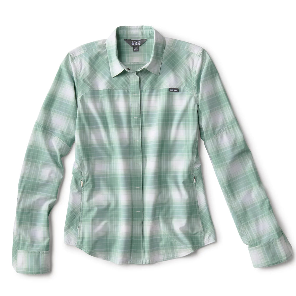 At first glance, the industry’s highest UPF rating of 50+ in our Women's PRO Stretch Shirt might seem like its standout feature. Until you put it on and it becomes apparent: this shirt is so light, it hardly feels like you’re even wearing one. The main body is made from a stretchy, woven fabric that allows for enhanced comfort—even when making aggressive movements like casting for distance, poling, or back rowing the boat above a pod of risers. A collar made from moisture-wicking, breathable Polartec® Power Dry® catches and dries sweat and spray as it runs off your head and neck. Underarm gussets increase your range-of-motion with zero restriction. The shirt’s anti-odor finish means you’ll get multiple wearings between washings and spend much less time dealing with laundry when you could be fishing. Hidden sunglass/cell phone cleaner in lower hem. Two concealed side pockets for accessories and gear. Athletic Fit significantly decreases wind flap.